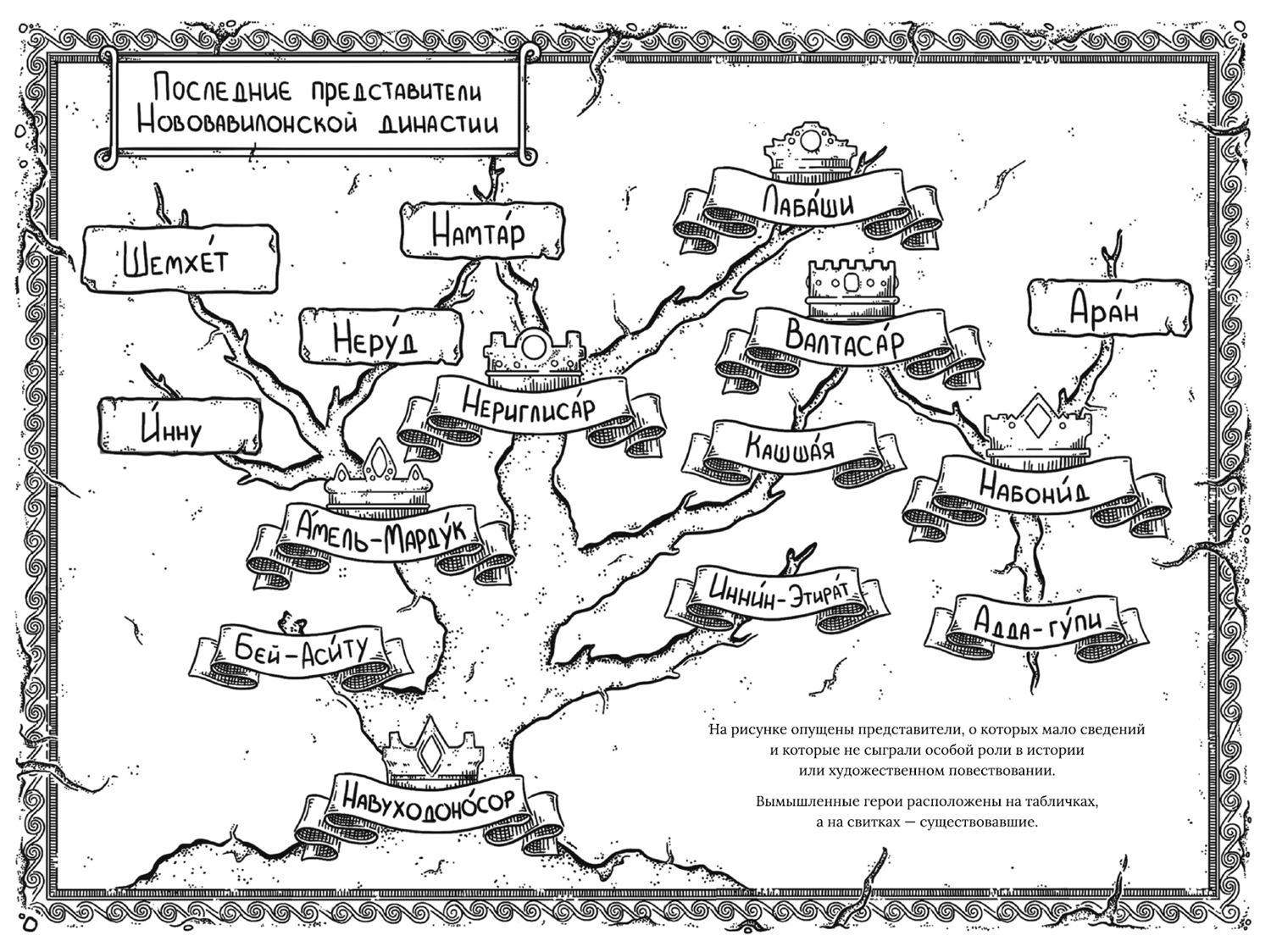 Там, где в родственных связях есть сомнения, автор выбирал варианты, которые лучше работали на художественность и стройность сюжета. Например, доподлинно неизвестно, которая из дочерей Навуходоносора была женой Набонида и был ли Нериглисар его зятем или сыном. То же самое относится к историческим постройкам и событиям: так, ламассу найдены в ассирийских дворцах, а также у современных историков есть сомнения в том, что висячие сады находились в Вавилоне (больше склоняются к Ниневии). Не все источники заслуживают доверия, но автором было принято решение не ставить слова древних историков (например Геродота и Иосифа Флавия) под сомнение и последовать традиции, начатой ими.