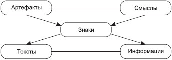 Феномены культуры – это артефакты, которые несут в себе смыслы, то есть выступают как знаки, обладающие значениями. Совокупности знаков образуют тексты, в которых содержится социальная информация(рис. 2.1).
