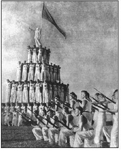 7. Кадр из документального фильма «Песня молодости» о параде на Красной площади 24 июля 1938 г. (ИКи, 1938, 9, с. 35).