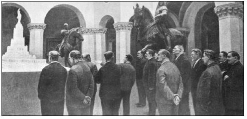 10. Художник С. Горелов. Руководители партии и правительства рассматривают макет Дворца Советов в Музее изобразительных искусств. 1937. (Атаров, с. 42 — 43).