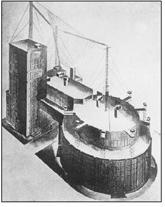 4. Ле Корбюзье. Конкурсный проект Дворца Советов. 1931. (Ле Корбюзье. Архитектура XX века. М., «Прогресс», 1970, с. 115).