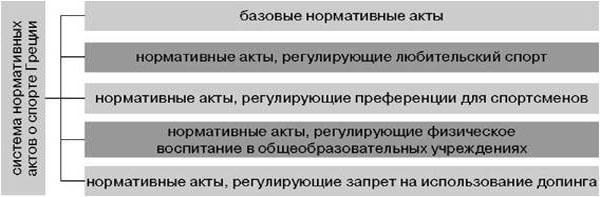 Рисунок 1. Система нормативных актов о спорте (в том числе о плавании) Греции