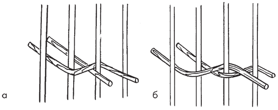 Рис. 3 Плетение веревочкой в 2 прута: а – I этап; б – II этап