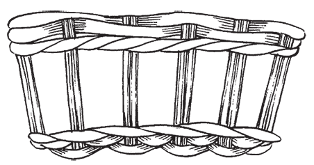 Если во время плетения закончится прут, его конец следует закрепить за стоячком, с внутренней стороны прикрепить новый прут, а затем продолжить работу. В процессе плетения по окружности число стоячков должно быть нечетным.