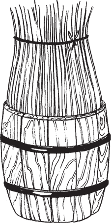Рис. 19. Правильная установка пучка из ивовых прутьев в деревянной емкости