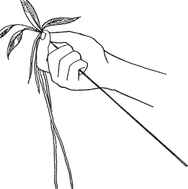 Рис. 24. Удаление тонкой части верхушки ивового прута