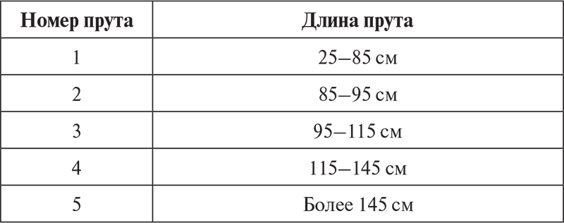 Достаньте из пучка наиболее длинный прут (вы будете использовать его в качестве шаблона). При сортировке разложите прутья по размеру, формируя таким образом несколько пучков (рис. 23, б). Для удобства вы можете использовать систему маркировки, которая представлена в табл. 1.