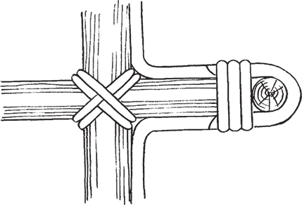 Применяются и другие типы соединений, например угловые подстрелками и подлучками (рис. 14). Чтобы усилить их, выполняется не менее пяти винтов ивовой лентой.