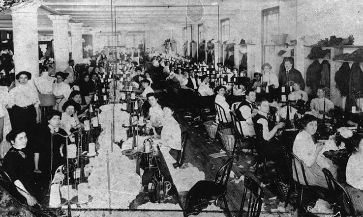 В швейном квартале проходила влиявшая на стиль и качество продукции разделительная линия между фабриками, состоявшими в профсоюзах, и мастерскими, не входящими в них. Вторые могли платить более низкую заработную плату и еще больше усиливали конкуренцию в индустрии моды. Однако на фабриках, где условия труда контролировались профсоюзами, возникала напряженность по гендерному признаку, поскольку мужчинам, как правило, поручалась наиболее квалифицированная работа (например, они чаще работали закройщиками), и правила Американской федерации труда, главного профсоюза, не учитывали нужды низкоквалифицированных работниц. Со временем напряженность росла и в области производства, и в гендерной сфере, что привело к повышению числа забастовок. Наиболее серьезные из них вспыхнули в 1909 и 1910 годах среди работниц швейной промышленности, требовавших улучшения условий труда на фабриках. Их движение стало известно как Восстание двадцати тысяч. Это была крупнейшая на тот момент в истории Америки стачка женщин. Она способствовала пополнению рядов членов профсоюзов. Чаще всего женщины-работницы вступали в Международный женский профсоюз работниц швейной промышленности (ILGWU) [55].
