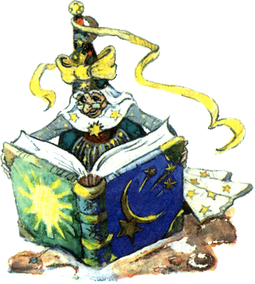Виллина вынула из складок одежды крошечную книжку величиной с наперсток. Волшебница подула на нее, и на глазах удивленной и немного испуганной Элли книга начала расти, расти и превратилась в громадный том. Он был так тяжел, что старушка положила его на большой камень.