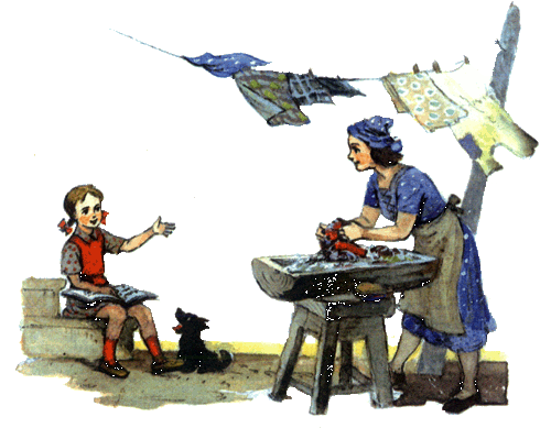 Однажды летним вечером Элли сидела на крыльце и читала вслух сказку. Анна стирала белье.