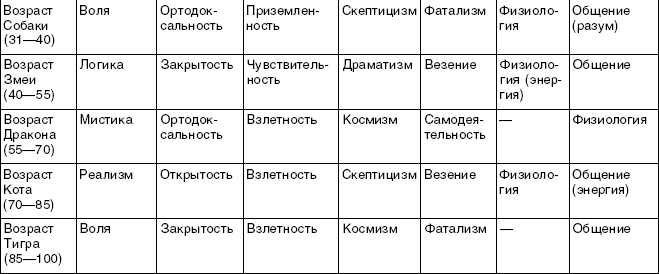 Причем, что характерно, многие структуры, в гороскопическом кругу симметричные и красивые, в возрастной последовательности становятся уродливыми и кособокими, но именно в этой кособокости так легко узнается наша жизнь, ее живое дыхание, ее парадоксы и неожиданные повороты. Согласитесь, гороскоп слишком симметричен, чтобы соответствовать духу жизни. Есть в гороскопе что-то мертвенное, что-то вековечное. А вот возрастная последовательность – это драма, это соединение несоединимого, это мучительный и вдохновенный прорыв, идущий под лозунгом: «Только вперед!»