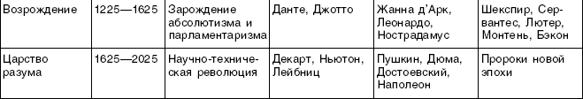 5. Учение о возрастах человечества, о 400-летнем ритме очень важно соразмерять с расписанием имперских циклов, ибо именно в имперских циклах, как в плавильных котлах, рождается сталь истории, ее направляющие рельсы.