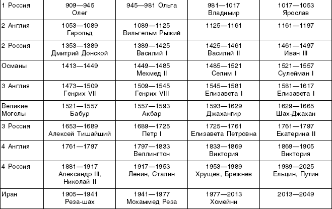 Может показаться, что речь идет всего лишь о 20 исторических эпизодах, иногда значимых, а иногда малозначительных, но на самом деле это не так. Именно в 20 этих 144-летиях сосредоточена вся история человечества. Все остальные циклы (восточные и западные) – это всего лишь фон, на котором происходила история, сама же история – это указанные имперские циклы, о чем подробно написано в книге автора «Поиски Империи».