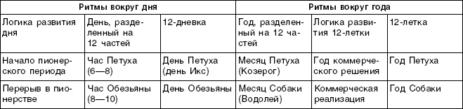Первое, что бросается в глаза, – это ход дневных ритмов в одну сторону, а годовых – в другую. Причина этого заключена в скрытом от глаза различии между структурой дня и структурой года. День предполагает ночной сон как период астрального общения и активную деятельность в разгар дня. Год требует совсем другого – максимальной активности именно в зимний период (аналог ночи) по принципу «Не спи – замерзнешь». Лето же, напротив, допускает некую сонливость, мечтательность.