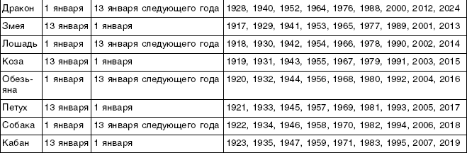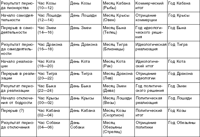 А что это, собственно говоря, за методы, с помощью которых можно определить начало года? Первый метод кажется ненадежным совершенно – это личные ощущения наблюдателя. Надо почувствовать, что один зверь ушел, а другой пришел. Второй метод более основателен – это наблюдение за теми людьми, у которых с уходящим годовым знаком и с приходящим годовым знаком особые отношения. Особенно показательны те, у кого наступает кармический год. Впрочем, второй метод также не слишком точен. Третьим, и самым главным, остается метод изучения биографий и наблюдения за событиями жизни людей, рожденных в дни, близкие к границе годов. По сути, только этот метод дает достоверные данные. Четвертый метод связан с внезапными историческими событиями, происходящими в первый день года. Метод достаточно точный, хотя теоретически дает иногда задержку в день-два. Ну и наконец самое главное: истинным доказательством верно найденных дат является тот факт, что даты, определенные всеми четырьмя методами, совпадают. Вот тут-то и есть главный триумф науки.