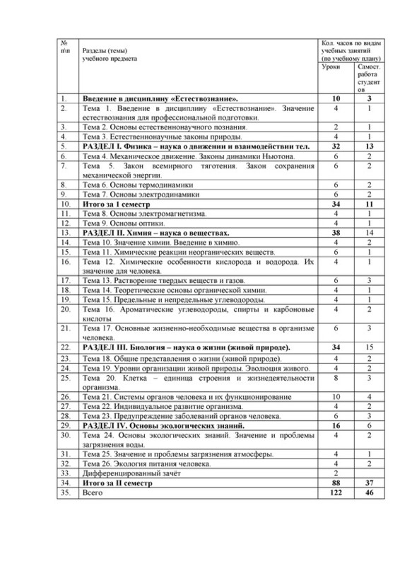 Основной задачей учебной дисциплины «Естествознание» является познание объективных законов природы и содействие их практическому использованию в интересах человека.