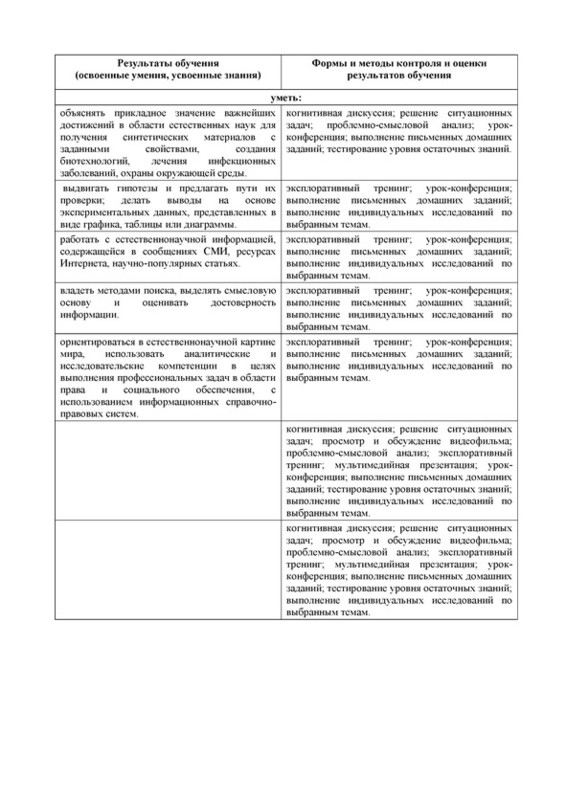 применение естественнонаучных знаний в профессиональной деятельности и повседневной жизни для обеспечения безопасности жизнедеятельности; грамотного использования современных технологий; охраны здоровья, окружающей среды.
