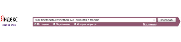 Например,»! Окна ПВХ недорого» — все эти слова заморозит Вордстат и будет показывать в выдаче именно с этими словами.