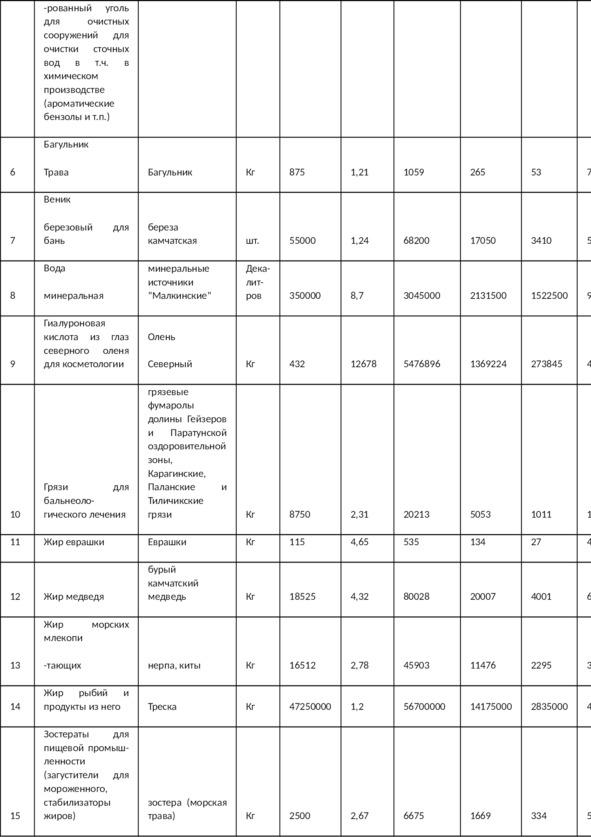 * оценка ресурсной базы проведена по ценам, сложившимся на Камчатском и Дальневосточном рынке на 01.01.2015 года, опубликованным в открытой печати Камчатского полуострова по курсу доллара, установленному Центробанком России на эту дату.