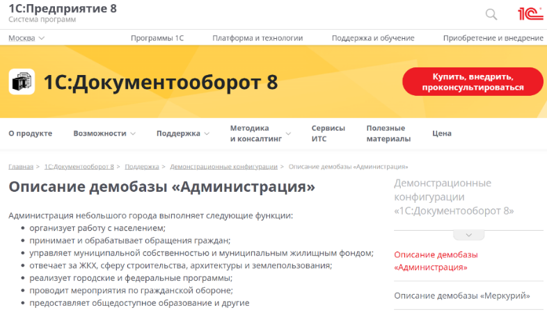 - Внимательно ознакомьтесь с описанием демонстрационной конфигурации «Администрация небольшого города» изучаемого программного продукта.