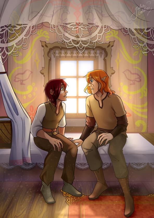 Когда Мэриан отдёрнул полог и вошёл, его взгляд тут же остановился на человеке, лежавшем на соломенном тюфяке, рядом с которым сидела принцесса. Военный лекарь поил почти бессознательного светловолосого мужчину горько пахнущими отварами и что-то тихо говорил Аби.