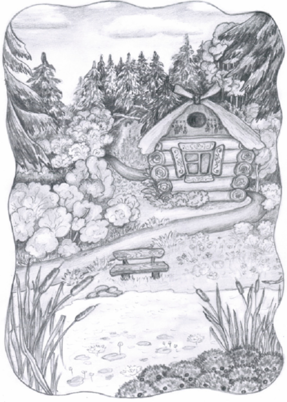 В глухой тайге на болоте проживала Евдоха — кикимора средних лет. Была она взъерошенной и забавной, в зелёном с жёлтыми разводами весёленьком сарафанчике. Жила в уютном доме из веток, глины и другого подручного материала. Болото, как у хорошей хозяюшки было прибрано и ухожено. На нём росли отменные клюква и камыши. Зелёные лягушки устраивали тут весёлые концерты, а лесной ручеёк брал начало и, пробивая себе дорогу по таёжным буеракам, дарил лесным обитателям чистую прохладную водицу. А зимой Евдоха на своём болоте устраивала для лесной ребятни каток и наряжала сушёными грибами и другими летними запасами рядом растущую ель.