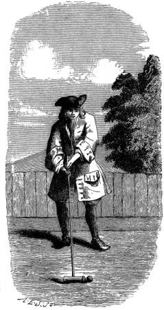 Reigate, bringing bats as wide as the wicket. In 1775 they wisely introduced a middle stump, as they found the best balls harmlessly flying between the wide wickets. It was feared lest this alteration would shorten the game too much, but it does not seem to have had that effect, as in an All England match against the Hambledon Club, two years later, one Aylward scored 167 runs, and stayed in two whole days. England owes much to the old Club at Hambledon for the improvements which it wrought in the game, which has become our great national pastime.