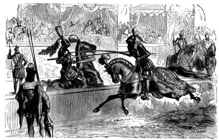 and Kenilworth, between Stamford and Wallingford, between Brackley and Mixbury, and between Blie and Tykehill. But in almost every part of England tournaments or jousts have been held, and scenes enacted such as I have described. Sometimes two knights would fight in mortal combat. If one knight accused the other of crime or dishonour, the latter might challenge him to fight with swords or lances, and, according to the superstition of the times, the victor was considered to be the one who spoke the truth. But this ordeal combat was far removed from the domain of sport.