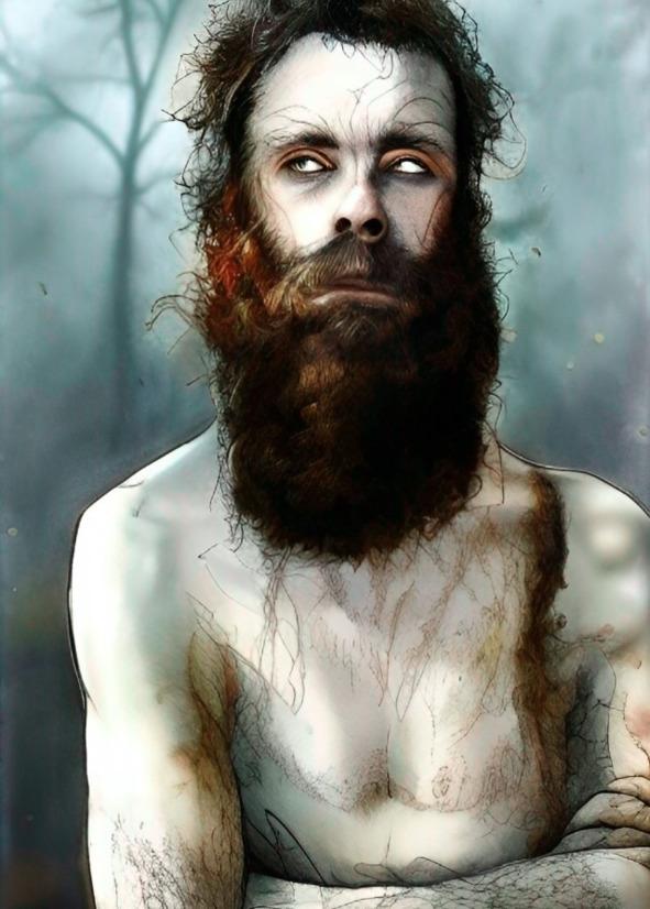 Человек был плечист, высок и жилист. У него были тёмно-русые кудрявые волосы, аккуратная бородка, почти затянувшиеся шрамы по лицу и телу и добрые тёмно-синие глаза.
