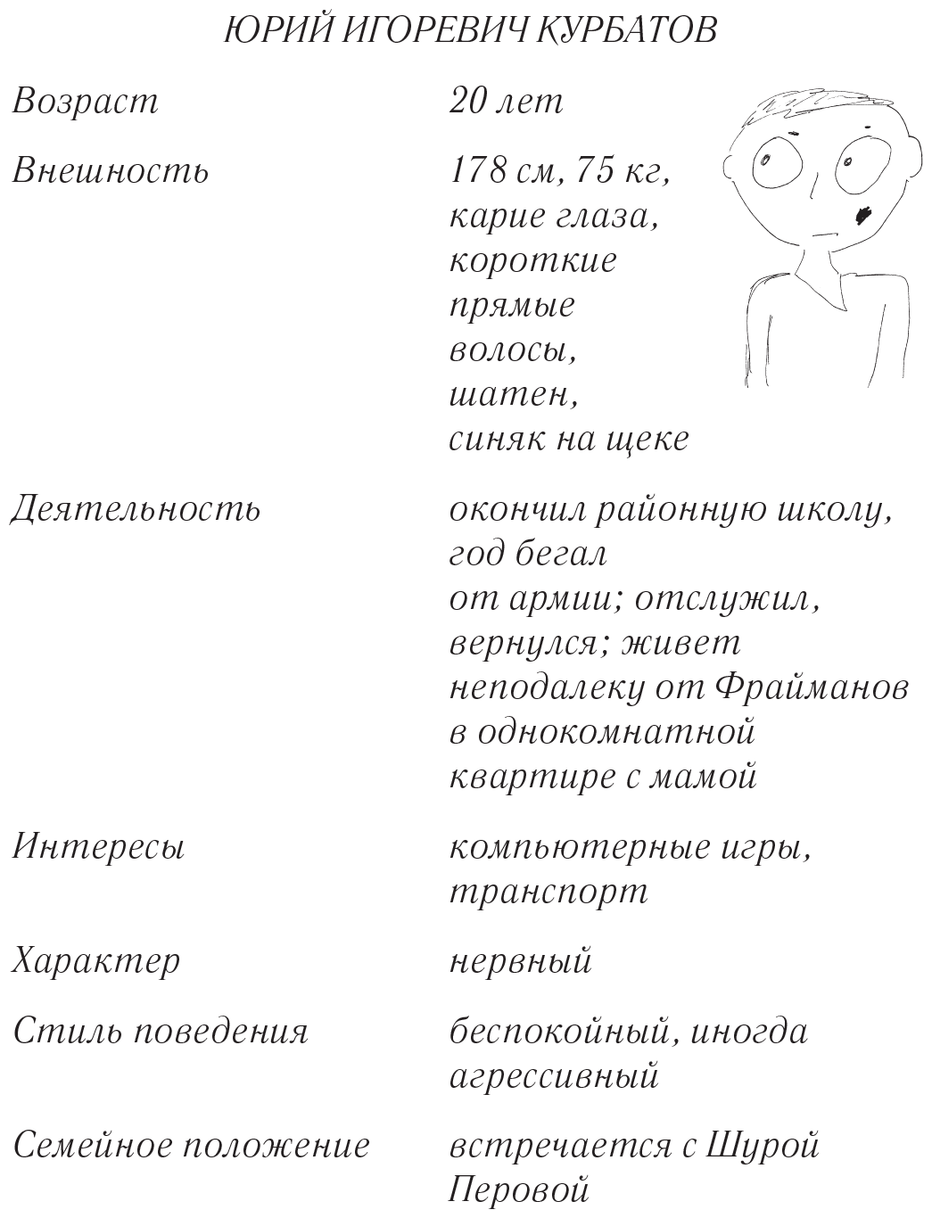 Но тетка, к которой я уже третий год хожу на подготовительные курсы во ВГИКе, сказала: «Да что вы все время выдумываете какую-то ерунду? Скучно! Напишите уже о том, что вы знаете, о чем-то из своего опыта». А я ей: «Да у меня нет никакого опыта». Она говорит: «Ну как это? Напишите, например, про свою семью». Ну и напишу про семью, буду тупо описывать, что происходит. Боюсь только, это будет пострашнее моих ужастиков.