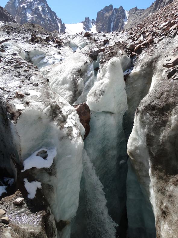 But now we know that all more or less great rivers of Semirech’ye are thoroughly replenished from the melting mountain ice. As a rule, glaciers get their names from a peak which slopes they slide down. Thus, among Malaya Almatinka glaciers that can be seen from streets of Almaty there are glaciers of Ordzhonikidze, Tuyuksu, Pogrebetskiy, Molodezhnyi, etc.