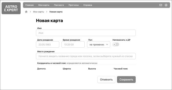 ●«Дата рождения» — указываете свою дату рождения или человека, на которого вы составляете карту.