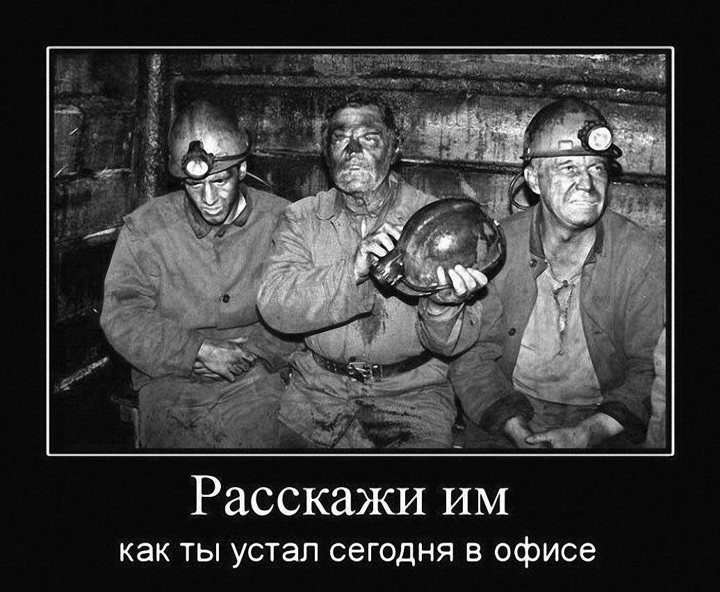 Про шахтеров я вспомнил еще и потому, что на мониторе одного из врачей на рабочем столе висел демотиватор с фотографией шахтеров, измазанных грязью, с кирками и надписью: «Расскажи им, как ты устал на работе». Сейчас демотиваторы называются мемами, а эта фраза теперь сопровождается фотографией врачей. Нынче мы популярнее шахтеров.