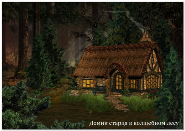 И она смело устремилась прямо на этот запах. Через несколько минут из чащи вынырнул небольшой, но красивый, весь вертикально покрытый соломой, домик, на крыше которого из трубы сочился столбик молочного дыма.
