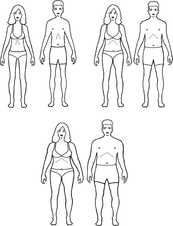 Соматотип (от греч. soma – род. п. somatos – тело) включает особенности телосложения, формы, размеры и пропорции тела и степень развития мышечной, жировой и костной ткани. Существует довольно много классификаций конституциональных типов по внешним признакам (величина и форма грудной клетки, форма и размеры спины и живота, степень развития мускулатуры и жироотложений и т. д.). Всего таких классификаций больше 40, но я хочу остановиться на самых популярных и простых для понимания, причем таких, которые можно использовать для укрепления собственного здоровья. Характеристики конституциональных типов, взятые из этих классификаций, будут использованы в этой книге и дальше.