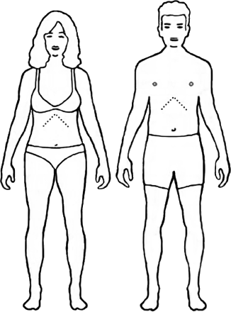Для выполнения этого теста разденьтесь по пояс, подойдите к зеркалу, ладонные поверхности больших пальцев прижмите к реберным дугам, а концы пальцев уприте в тот угол, где реберные дуги соединяются в области мечевидного отростка грудины. У нормостеников этот угол равен 90 градусам (угол прямой), у астеников – меньше 90 градусов (угол острый), у гиперстеников – больше 90 градусов (угол тупой).