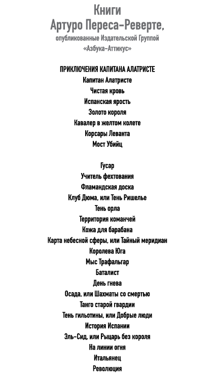 Перес-Реверте — бывший военный журналист, работавший во множестве горячих точек, прославленный автор блестящих исторических, военных, приключенческих романов, переведенных на сорок языков, создатель цикла о капитане Диего Алатристе, обладатель престижнейших литературных наград. Ему есть что рассказать о войне — он там был, и не раз. «На любой войне, — говорит он, — происходит одно и то же: где-то несчастные, полумертвые от страха люди в военной форме разных формирований стреляют друг в друга, сидя в окопах, перемазанные глиной, а какой-нибудь урод в уютном кабинете с кондиционером, покуривая сигару, далеко от линии фронта занимается разработкой дизайна знамен, созданием национальных гимнов и установкой памятников неизвестному солдату, зарабатывая таким образом на всей этой крови и дерьме». На войне невозможно быть романтиком. На войне невозможно быть объективным. На войне невозможно не понять, что войны быть не должно.