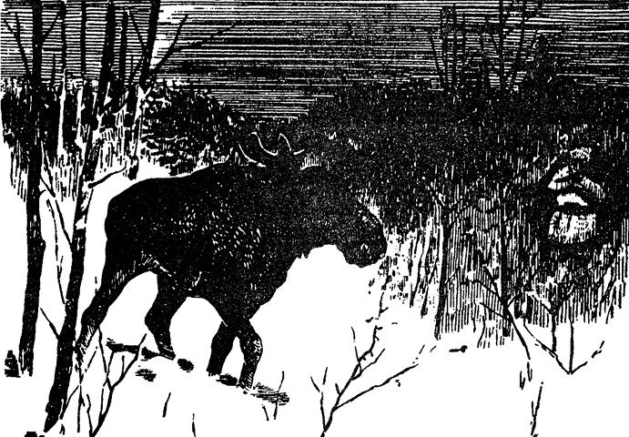Если погода тихая, ясная, а снег немного шуршит под лыжами и охотников трое, то один из охотников, продвинувшись по тропе немного внутрь круга, выбирает место более чистое, непосредственно на тропе или близ оной, и прячется за корягой или просто за стволом дерева. Остальные же двое тем временем заходят на противоположную сторону круга и весьма тихо и осторожно, к тому же в виду друг друга, начинают подвигаться к центру круга или к тому месту, где ожидают лосей. Они идут весьма осторожно, стараясь не производить никакого шума, даже шороха; часто останавливаются, осматриваются, вглядываются в каждый кустик впереди и по бокам, пока двинутся вперед, и т. д. Наконец натыкаются на лосей и стреляют. Если они зашли прямо против тропы и к тому же набрели на лосей стоящих и, стало быть, не так близко, то лоси обыкновенно идут по старой тропе, то есть назад, и натыкаются на засевшего в засаде третьего охотника; если же застали лосей лежащих, подошли близко и застали врасплох (что при этих условиях, то есть в тихую погоду, бывает весьма редко), то лоси бросаются в разные направления, куда попало. Если же при этих же обстоятельствах дует легкий ветер и в направлении от лосей (тропа под ветром), то уже заходит на другую сторону круга, то есть на ветер, только этот третий охотник и садится в засаду; двое же других идут против ветра по тропе или, вернее, имея тропу между собою, идя стороною, шагах в 30–50 от последней, смотря по характеру местности. Идут по тропе, пока не найдут на зверей; в таком случае лось обыкновенно идет против ветра. В обоих этих случаях третий охотник, то есть тот, который остается в засаде, играет, собственно, второстепенную роль, и у двух первых гораздо больше шансов убить зверя.