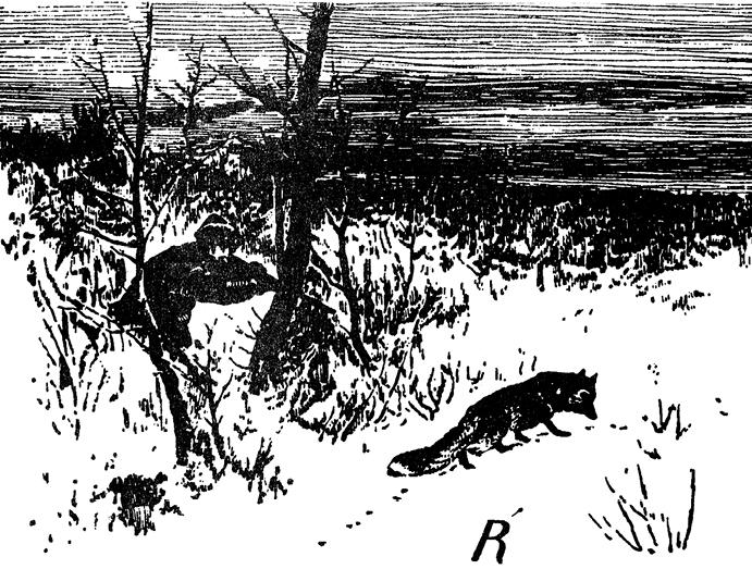 К концу января вследствие глубоких снегов ходьба возможна только на лыжах; лыжи шумят, и русак, если его сходить маликом, соскакивает далеко вне выстрела. Чтобы охотиться по русакам, обыкновенно прибивающимся в это время к жилью, всего лучше действовать следующим образом. Охотник берет с собой трех загонщиков и обходит те места, куда русаки ходят на жировку, как то: озими, крестьянские гумна, огороды. Найдя малик, который сделан русаком, шедшим с жировки на лежку, охотник идет этим маликом до первой сметки или петли и с этого места обкладывает зайца, то есть обходит круг шагов 500–600 в диаметре, наблюдая, однако, чтобы кусты, камни и т. п. места, в которых русаки обыкновенно ложатся, оставались в круге, и сообразно с этим уменьшает или увеличивает круг. Обойдя круг, то есть возвратившись с другой стороны на свой след и не найдя выхода, что означает, что русак лежит и обойден, охотник становится на входном малике возле первой петли за каким‐нибудь прикрытием: кустом, камнем, сугробом, а если он одет в белое охотничье, то есть зимнее, платье, то может стоять и на открытой местности. Загонщики немедленно заходят с противоположной стороны оклада и, разойдясь цепью, гонят, покрикивая и посвистывая, на охотника. Русак, соскочив от загонщиков, проходит возле своей первой петли шагах в 15–30, и, таким образом, охотник может стрелять наверняка.