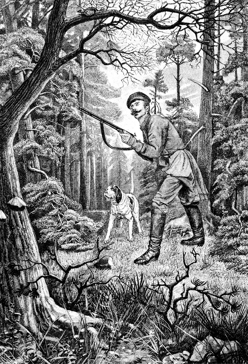 Не следует при первом тэканье ближайшего глухаря подкрадываться к нему. Только когда начнет он выводить свою трель, можно сначала тихо подходить к нему, укрываясь за деревьями, а затем и подскакивать. Вначале лучше всего подходить в направлении от запада к востоку, так как на побелевшем небе глухарь виднее и притом тогда реже приходится стрелять его в зоб и менее вероятности, что птица увидит охотника. Обыкновенно начинают подскакивать уже шагов за 80–100, редко менее, разве в темноте или при ветреной погоде; когда совершенно рассветет и глухари напуганы, не мешает принимать меры предосторожности и на более значительном расстоянии. Чем ближе разгар тока, чем яровитее играет птица, чем хриплее ее скирканье, а следовательно, она старше, тем более вероятности на успех. Если глухарь начнет обманывать, то есть останавливаться перед трелью или же и вовсе умолкает – иногда минут на 15, что означает, что он услышал или увидел охотника, необходимо спрятаться за дерево, или окаменеть на месте и терпеливо выждать настоящей игры, или же бросить эту, вероятно, уже стреляную птицу и начать подход к другой. Впрочем, некоторые промышленники, чтобы подзадорить такого чуткого самца, употребляют не без успеха многие уловки, как, например, кокочут постящейся тетеркой или подзадоривают его, скобля и ударяя ножом по стволу ружья и подражая этим трели. Иногда глухари даже подлетают на такого рода манку. Есть глухари, которые постоянно меняют место и, пропев 2–3 раза, перелетают, хотя и недалеко. К таким птицам подходить не стоит, да вообще, если ток немалочислен, лучше не подходить к раз согнанному самцу и искать другого. Глухарь, которого подшумели два раза, в третий ни за что не подпустит.