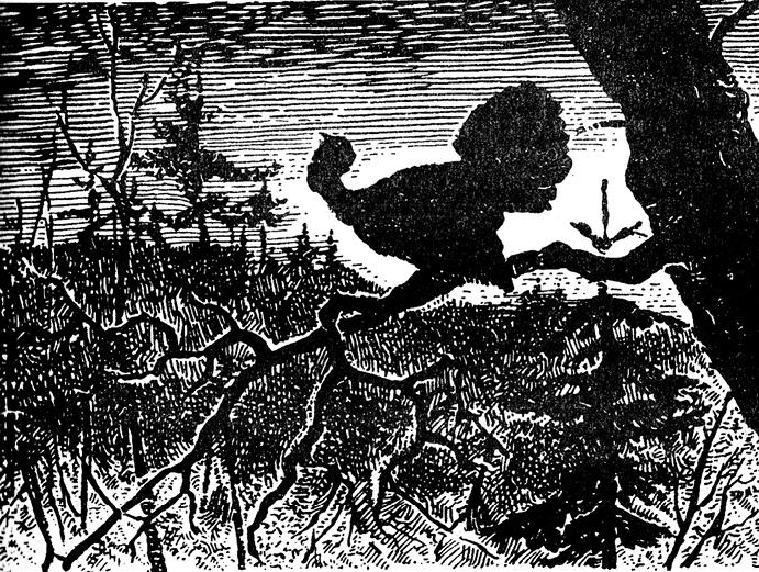 Всего затруднительнее в этой весенней охоте подход или, вернее, подскакивание, особенно когда место слишком открыто и негде спрятаться. Лучше выбирать самый длинный путь, если он представляет большие удобства, то есть имеет деревья, которые бы заслоняли охотника от глухаря, и лишен больших сугробов, ям и груд валежника. Как только глухарь участит свое тэканье и начнет настоящее щелканье, надо быть готовым к прыжку: при первом скирканье охотник стремглав бросается вперед, делает два-три огромных прыжка и останавливается как вкопанный, по возможности раньше, чем птица кончит щелканье, так как иногда эхо последних шагов может потревожить ее. Тут уже нечего разбирать, провалились вы в воду или снег, а необходимо стоять неподвижно до следующего боя, стараясь вперед заранее определить направление и самое место будущих прыжков, чтобы снова не попасть в еще более неловкое положение. При последнем прыжке необходимо продавливать под ногами лед, некрепкий наст или скрытый под снегом валежник. В остзейских губерниях иногда подпрыгивают к глухарю при помощи длинной палки, но навряд ли это удобно. Гораздо благонадежнее способ, употребляемый в Австро-Венгрии, где очень многие охотники подходят к токующему глухарю, держа перед собою густую сосенку до сажени вышиною или, что еще лучше, передвигая особо устроенную ширму под цвет почвы и окружающей местности, то есть ранней весной белую, позднее же серую или желтовато-зеленую.