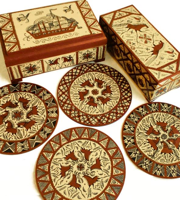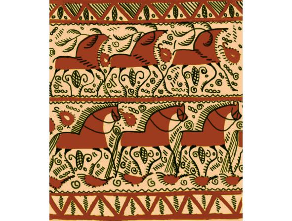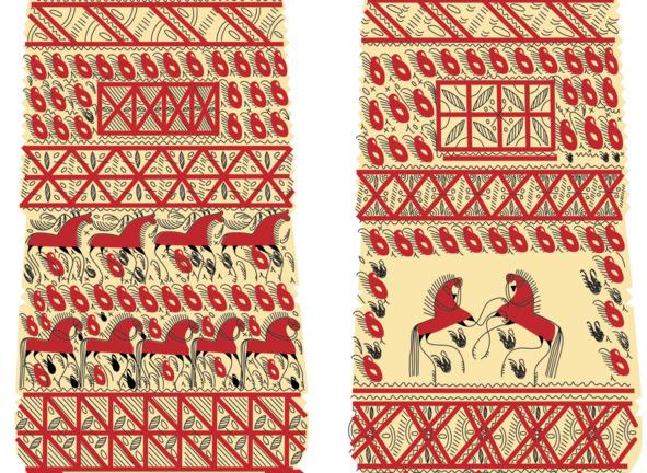Все рисунки сделаны мною на основе существующих старинных прялок и коробов с палащельской росписью.
