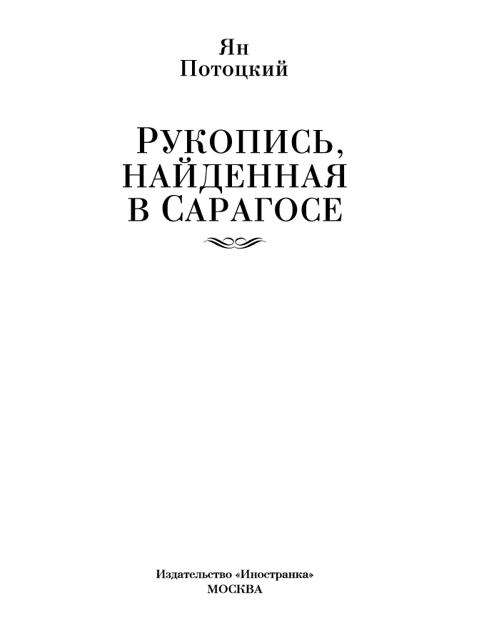 Рукопись, найденная в Сарагосе : роман / Ян Потоцкий ; пер. с пол. А. Голембы. — М. : Иностранка, Азбука-Аттикус, 2022. — (Иностранная литература. Большие книги).