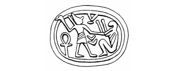 Фараон Нехо, поражающий азиатского варвара (Иосию?), на печати из Мегиддо конца VII в. до н.э.