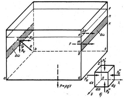 Для выяснения закона распределения гидростатического давления в покоящейся жидкости рассмотрим общий случай равновесия жидкого тела, находящегося в состоянии относительного покоя.