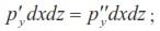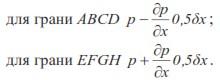 Пусть р – гидростатическое давление в точке Ц, тогда, учитывая непрерывность изменения напряжения в жидкой среде и пренебрегая величинами бесконечно малыми, стремящимися к нулю при уменьшении параллелепипеда до размеров точки, мы можем определить среднее гидростатическое напряжение на соответствующих гранях параллелепипеда по следующим выражениям: