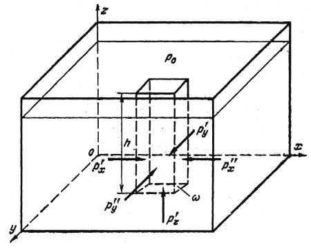 Рис. 3.4. Схема для определения гидростатического давления в точке