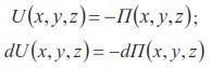 Как известно из теоретической механики, в этом случае должна существовать некоторая функция координат П (х, у, z), называемая потенциальной энергией, равная силовой функции, взятой с обратным знаком. Из этого следует: