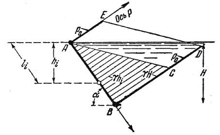 Эпюра гидростатического давления на наклонную стенку показана на рис. 3.5, а давление в точке поверхности находится по формуле